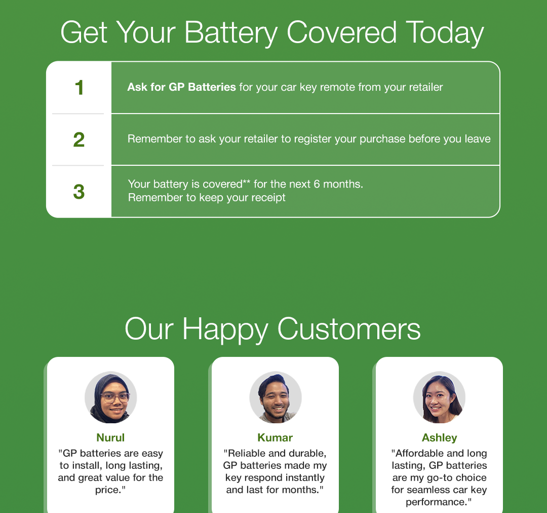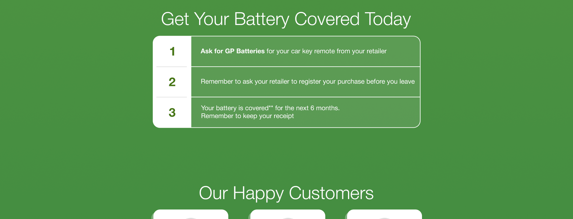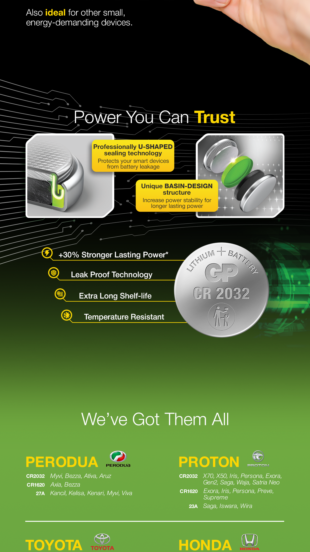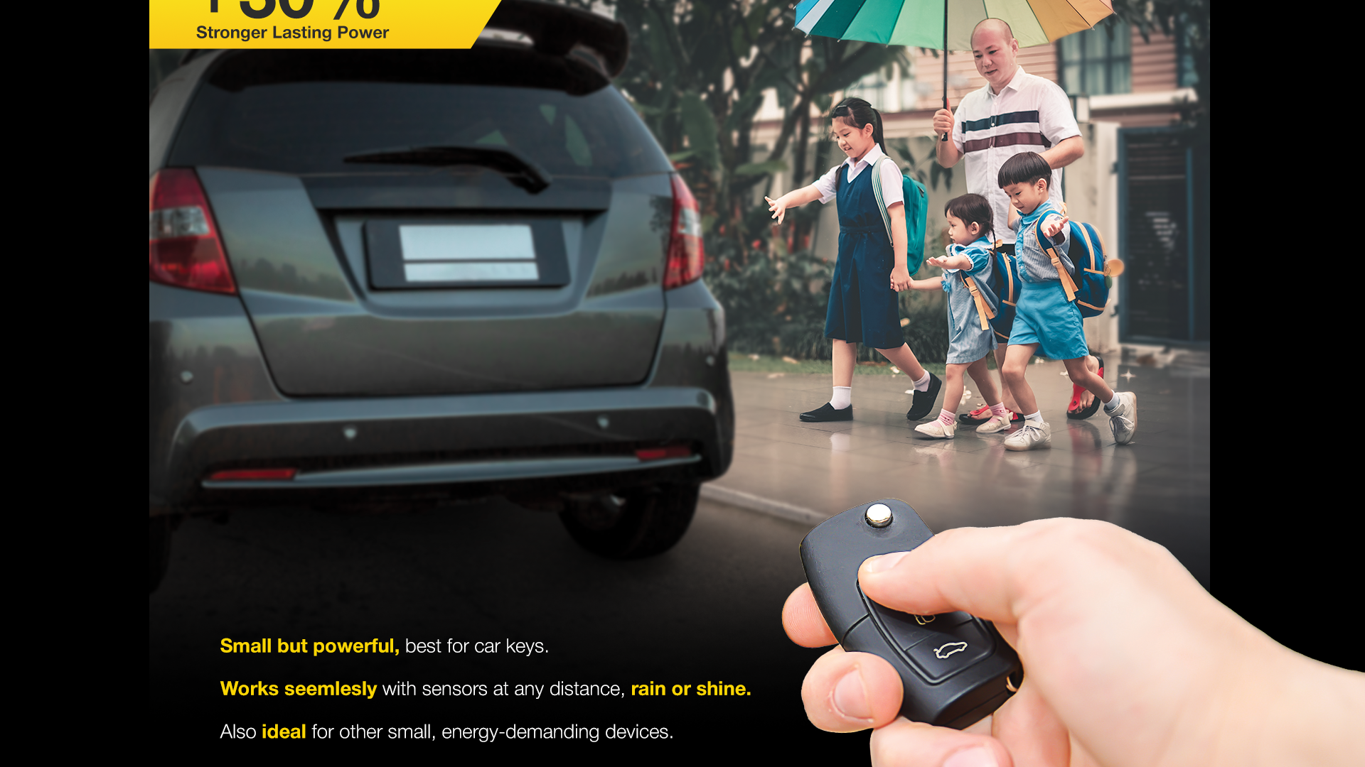 *30% more power vs IEC standard test of the same battery type. Result may vary by devices and usage pattern. **Warranty covers the GP battery in your car key remote only.